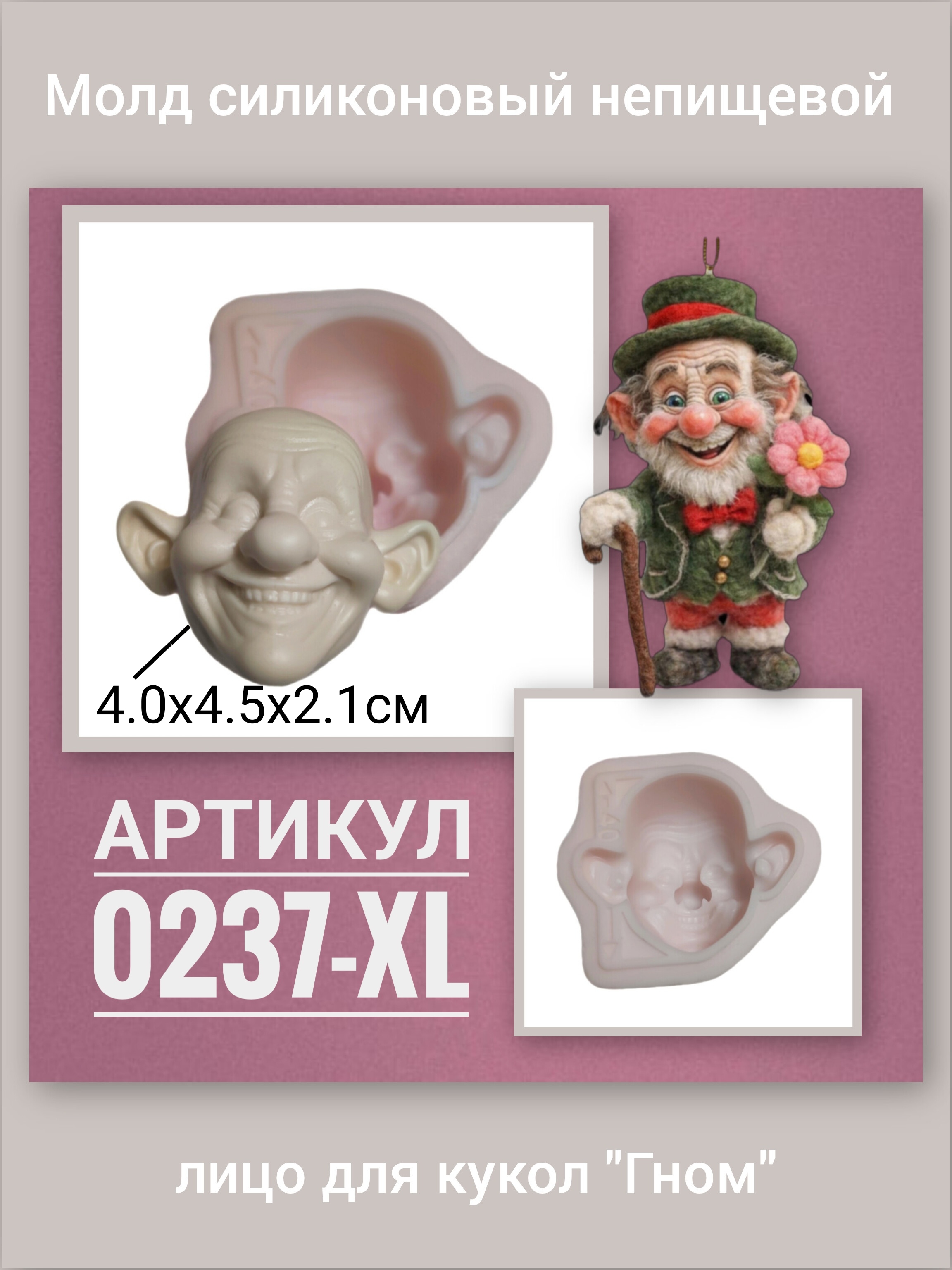 0237-XL Молд силиконовый непищевой "Гном" XL