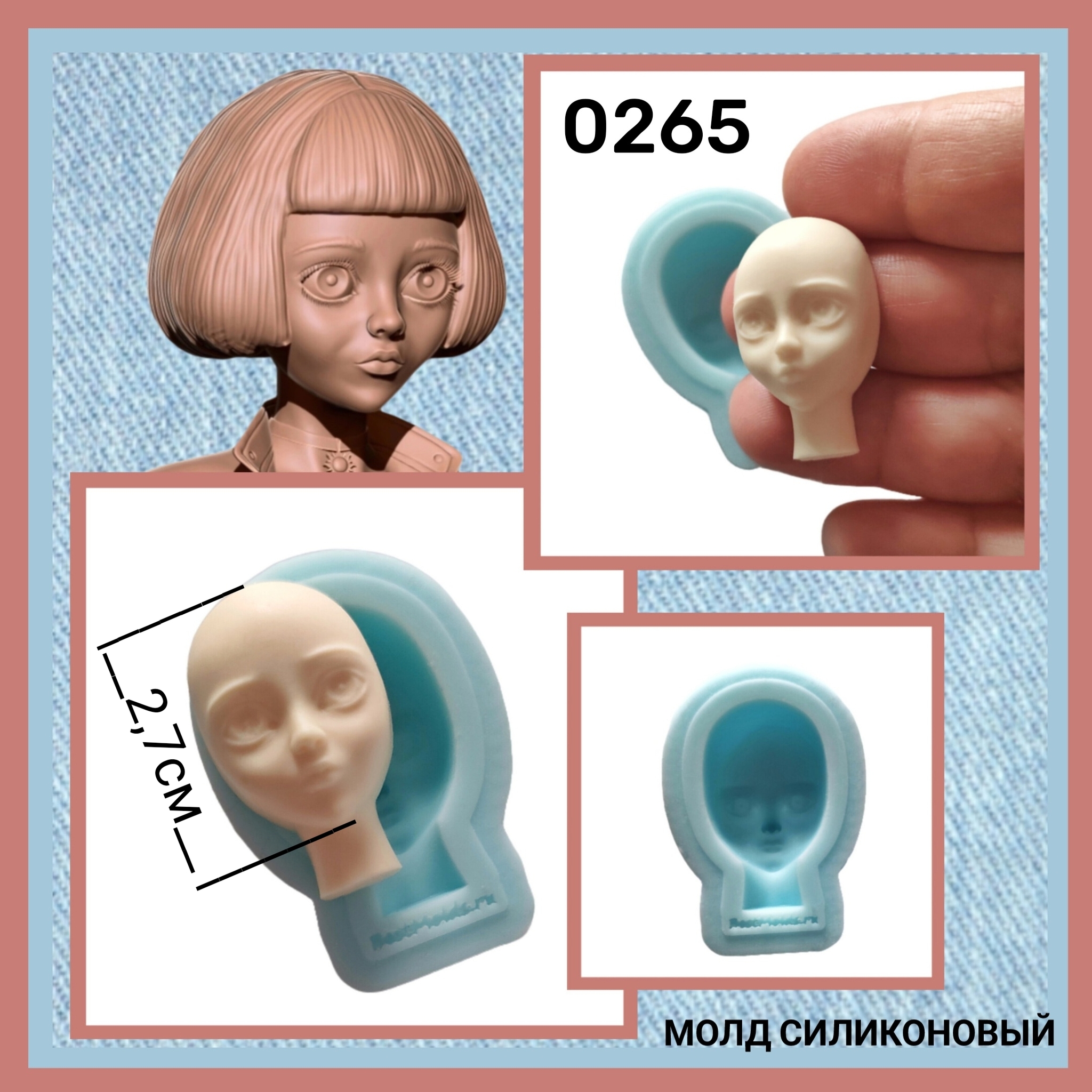 Авторский силиконовый молд силиконовый Лицо девочки "Илона" предназначен для создания куклы (ватной игрушки).