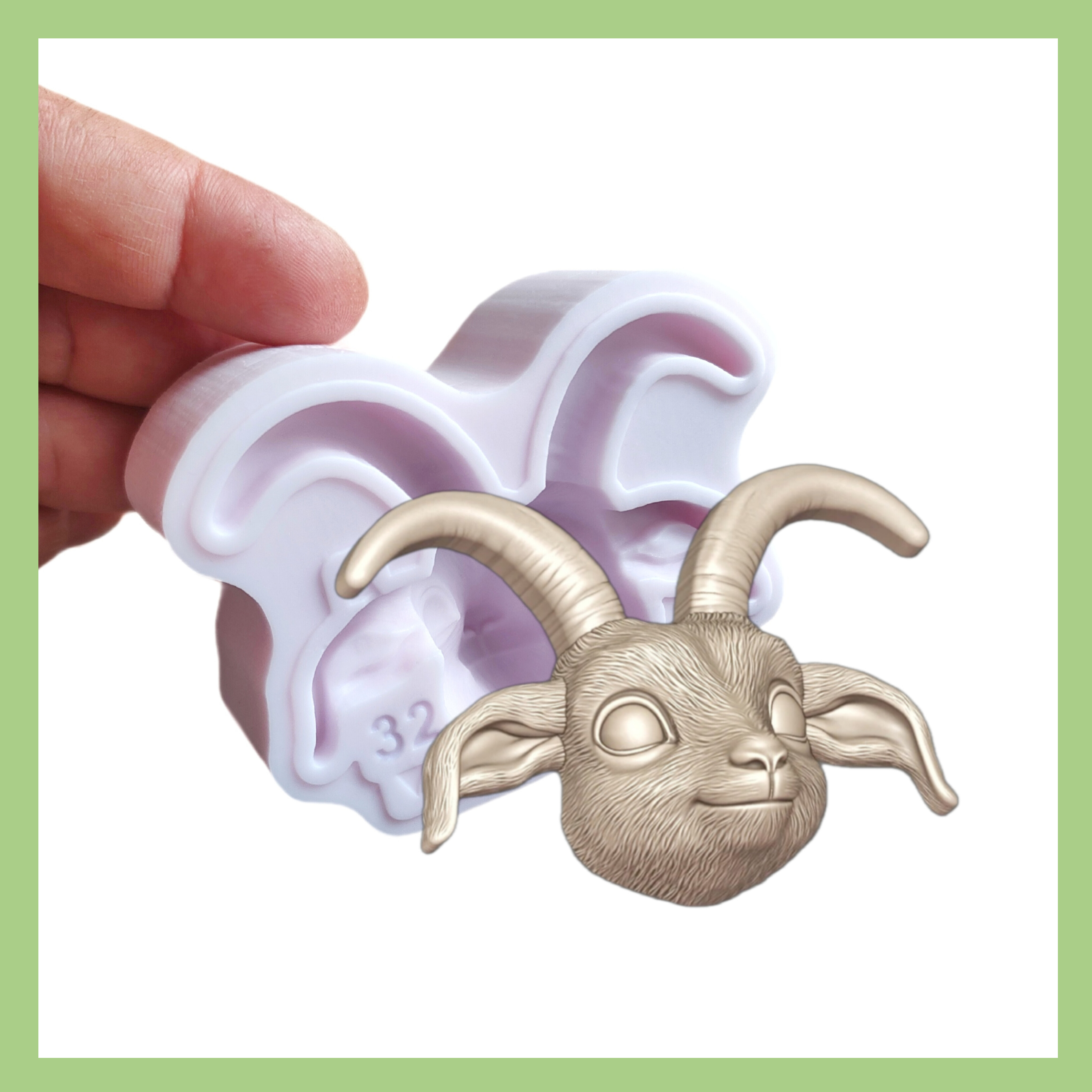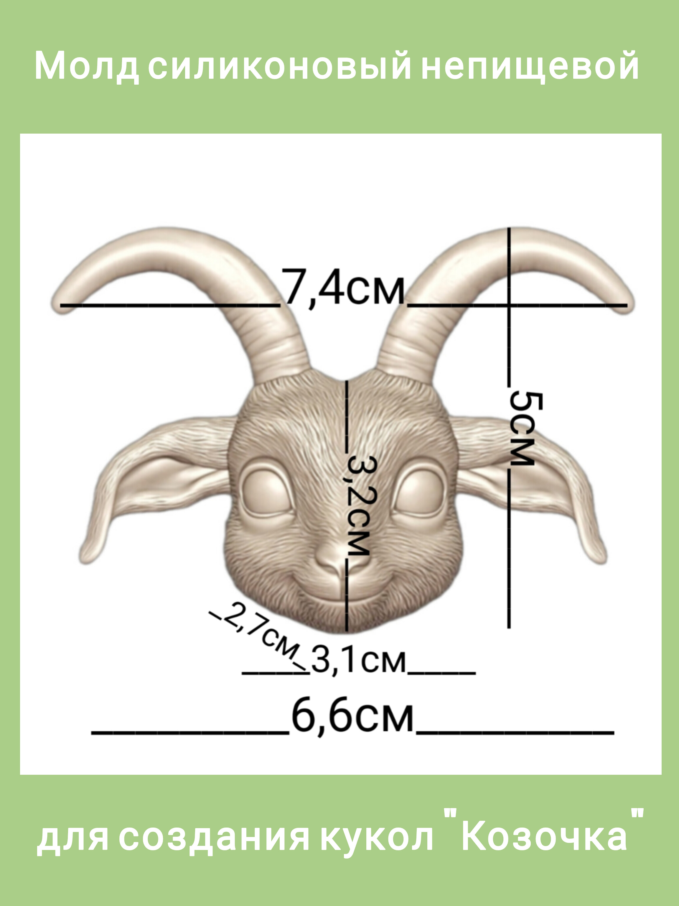 Авторский силиконовый молд "Козочка". Высота мордочки без учёта рогов 3,2 см. Производство Россия. РОСиТТА.