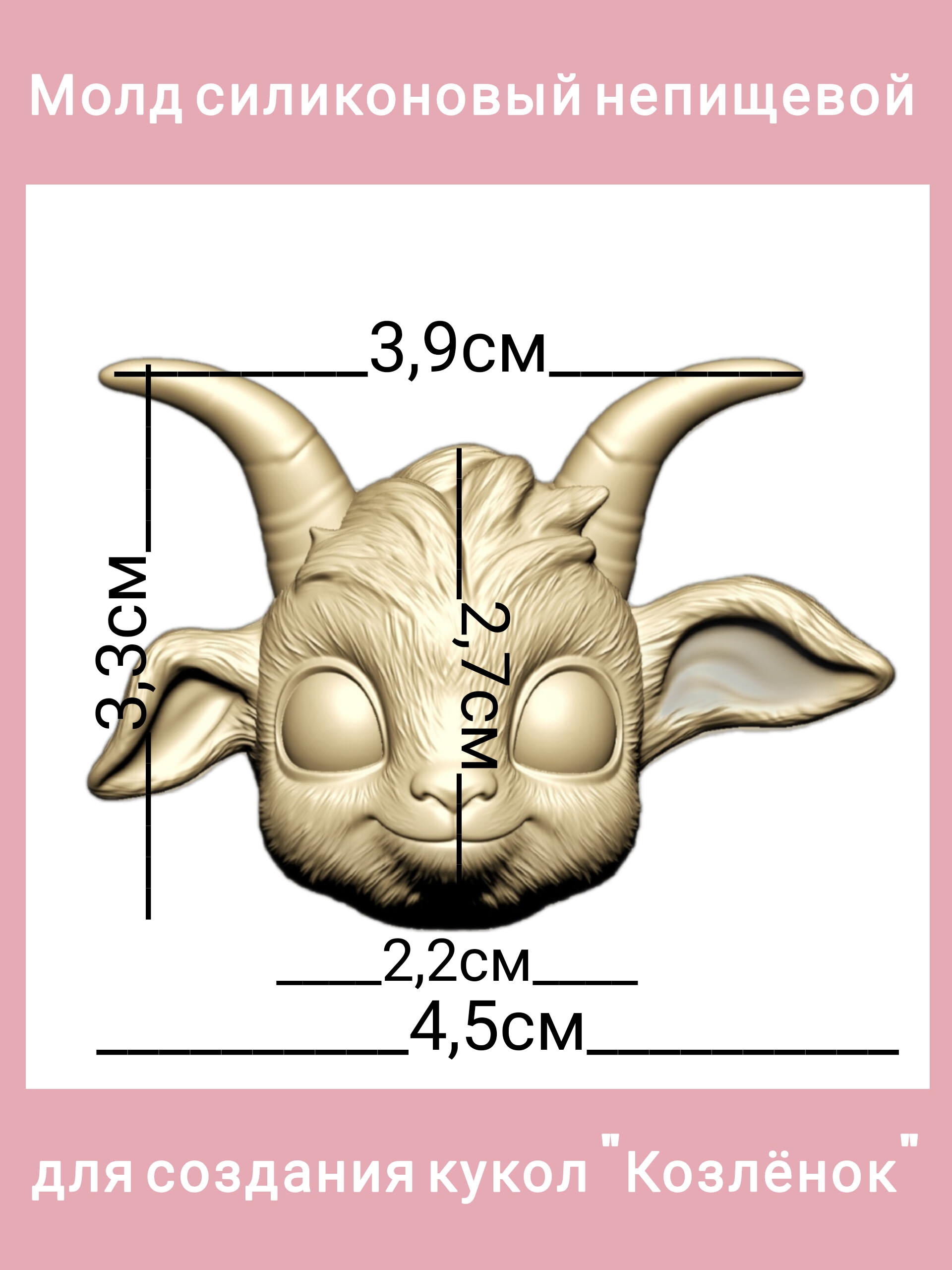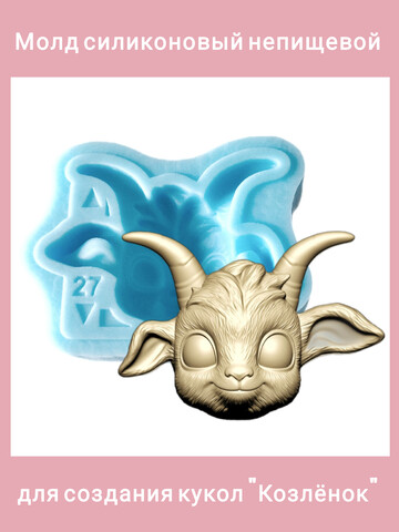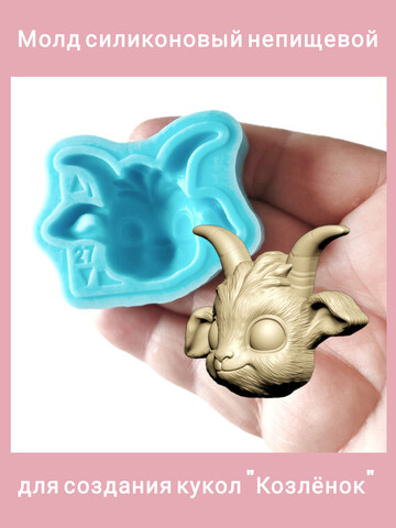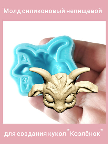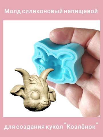 Авторский силиконовый молд "Козлёнок". Высота мордочки без учёта рогов 2,7 см. Производство Россия. РОСиТТА.