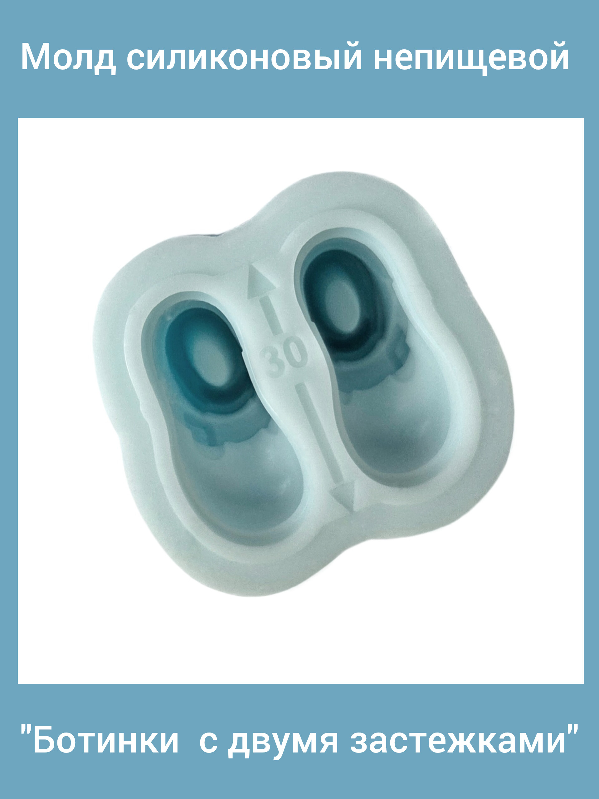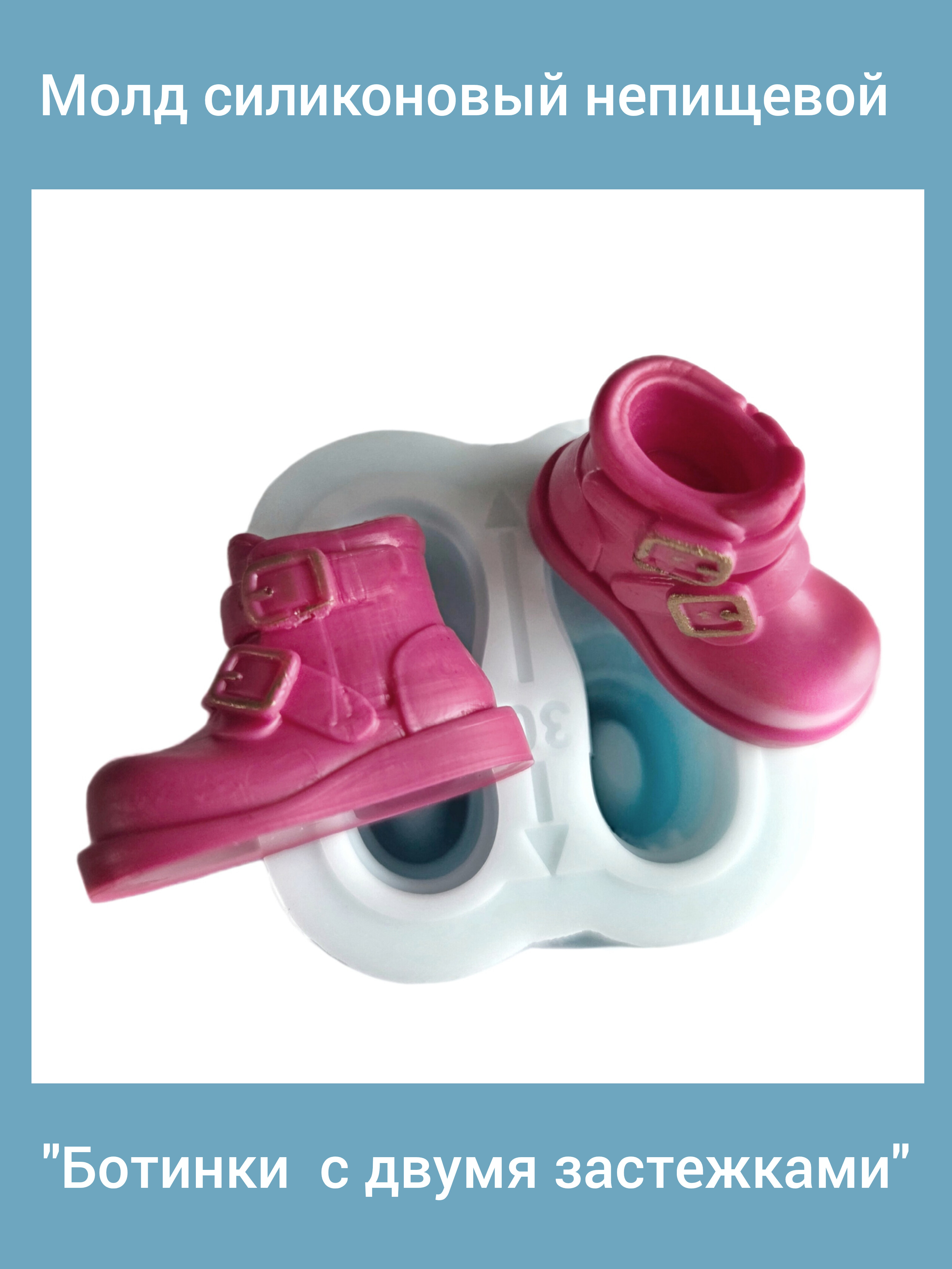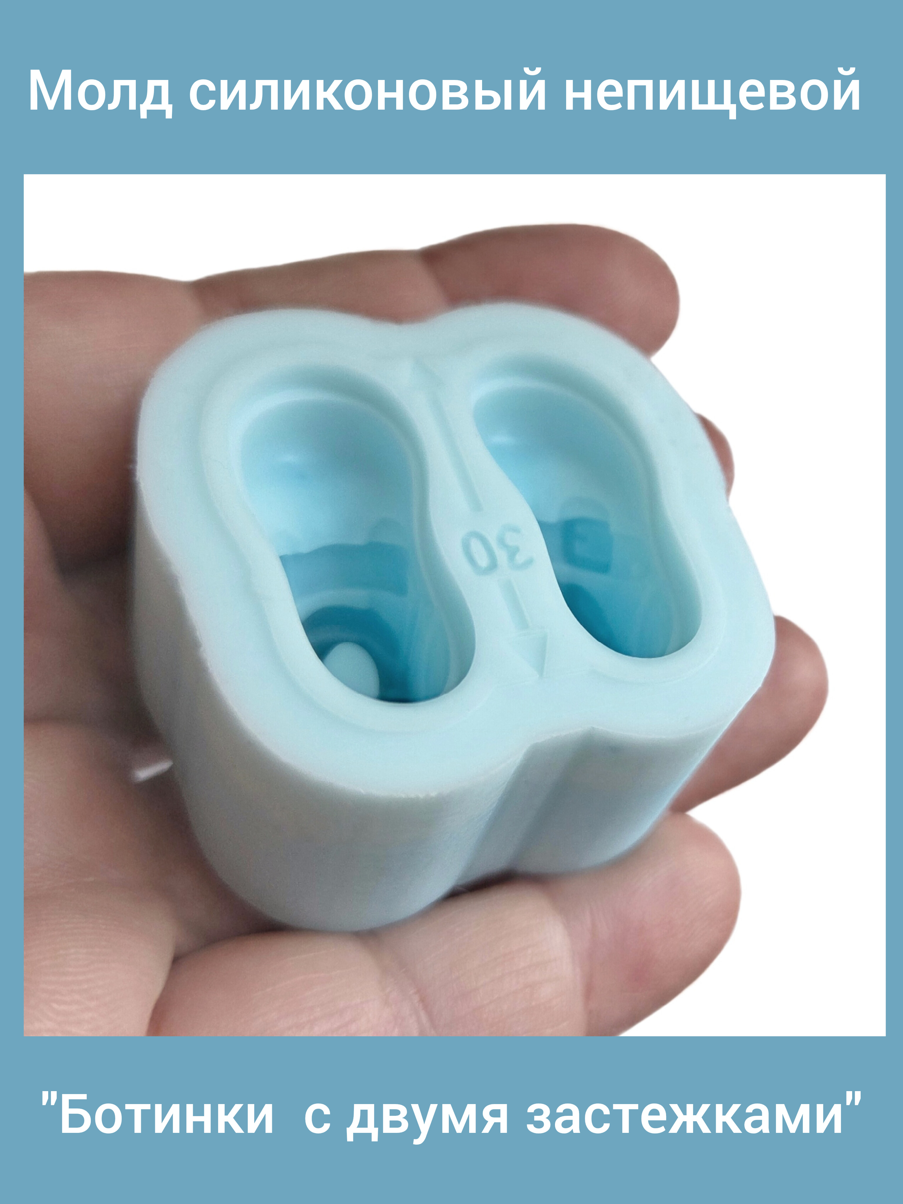 Молд силиконовый "Ботинки с двумя застежками" (размер 30 мм) для создания куклы. Производство Россия. РОСиТТА.
