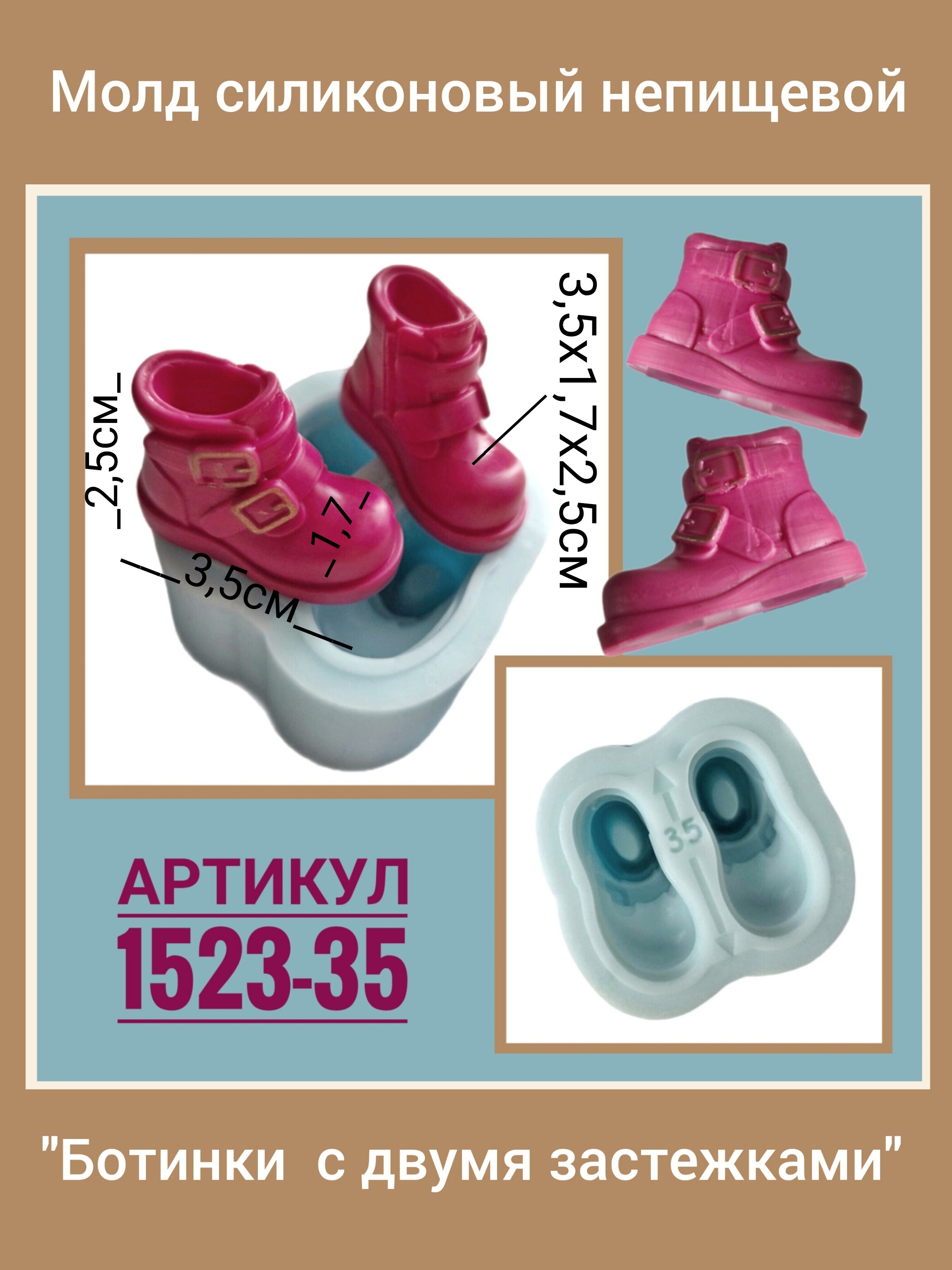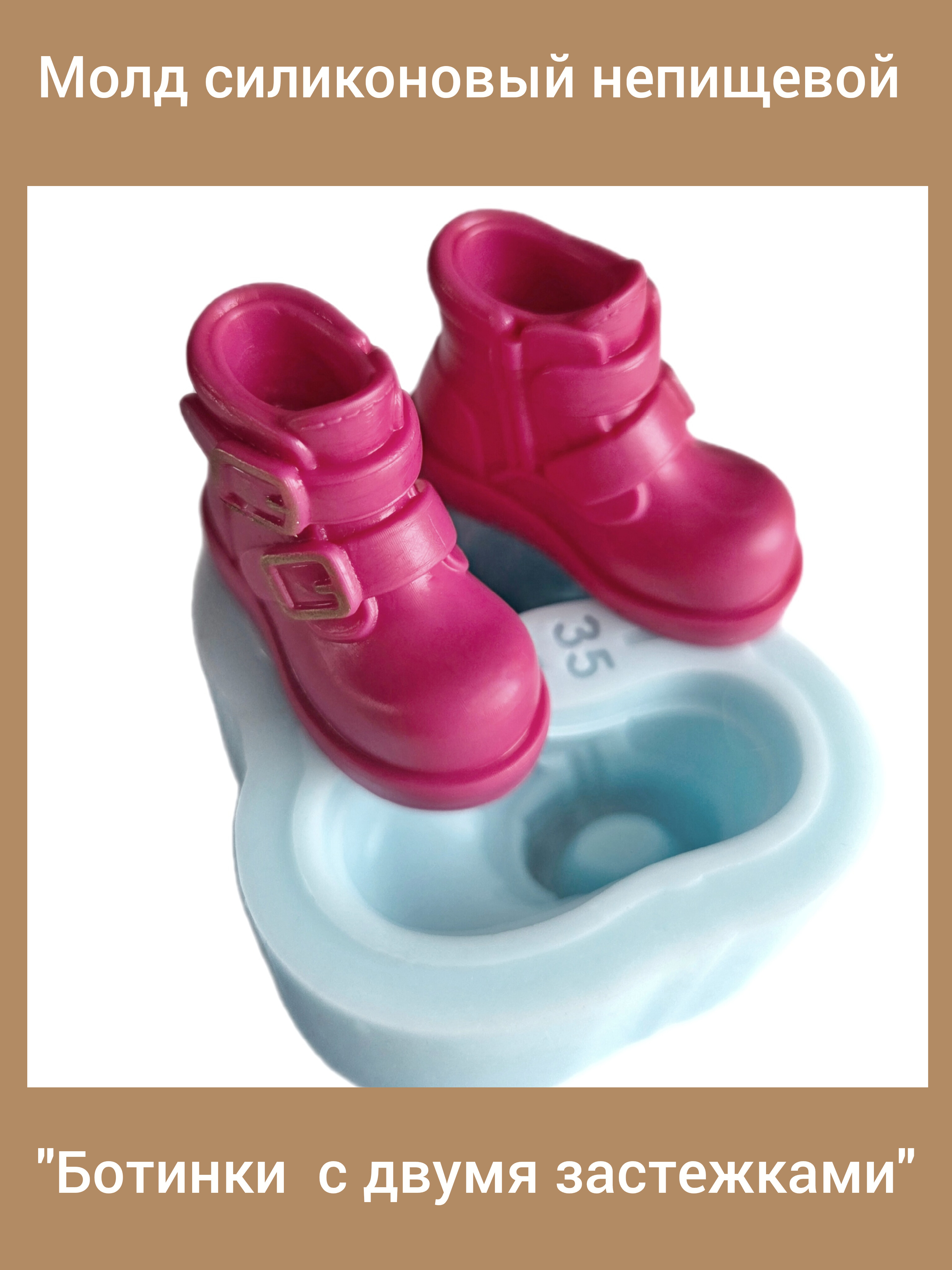 Молд силиконовый "Ботинки с двумя застежками" (размер 35 мм) для создания куклы. Производство Россия. РОСиТТА.