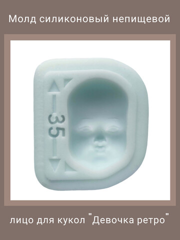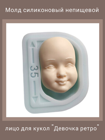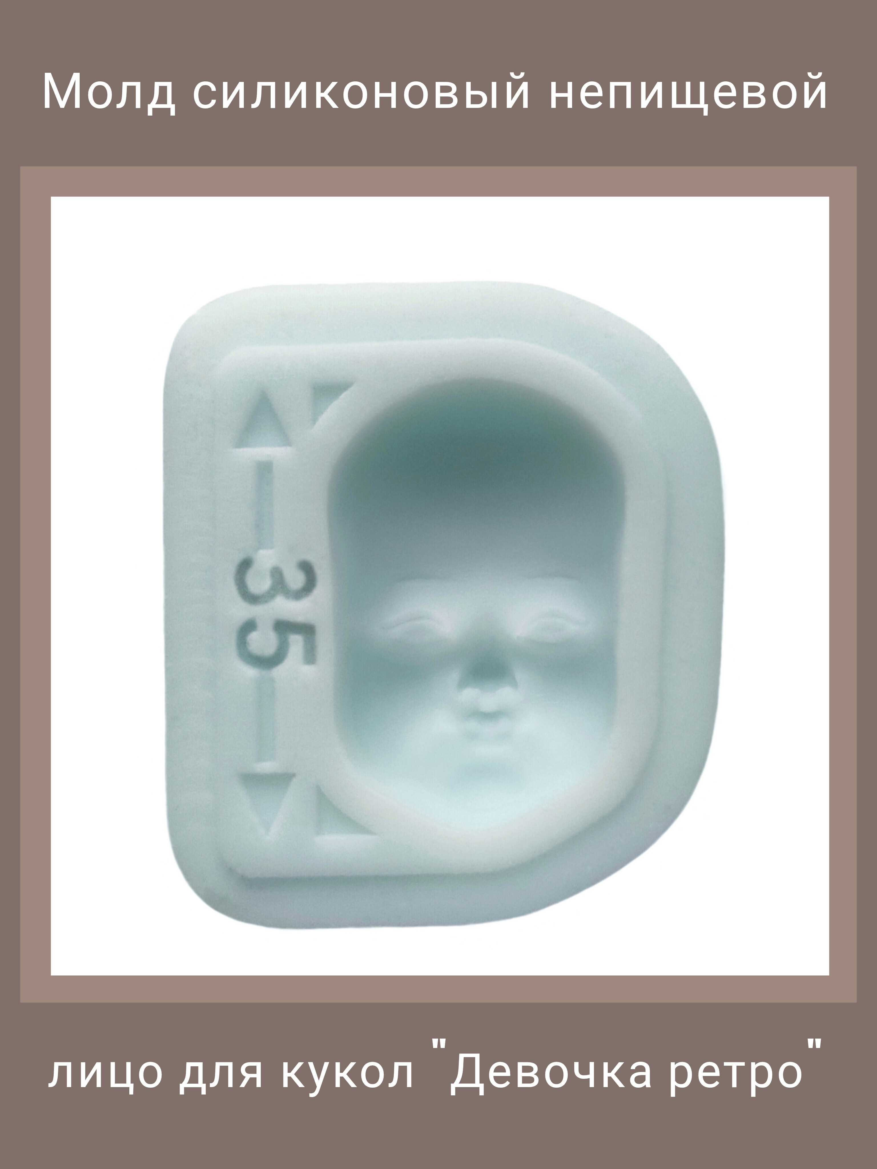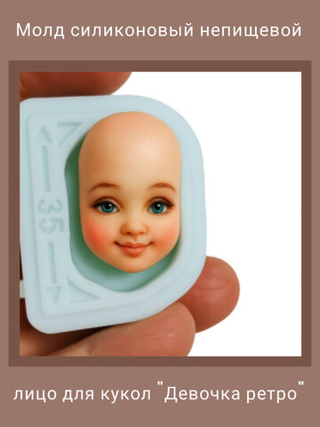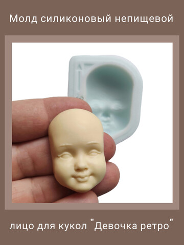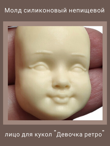 Авторский силиконовый молд "Девочка ретро". Лицо для изготовления куклы (ватной игрушки) большой. Производство Россия. РОСиТТА.