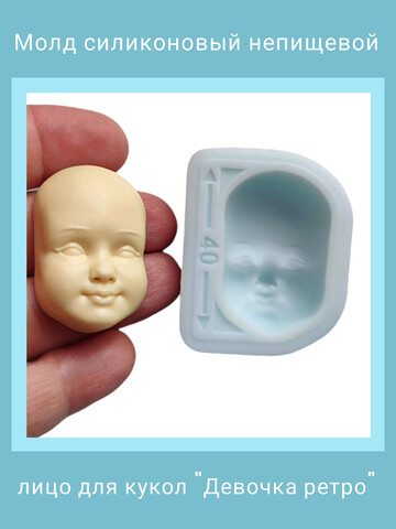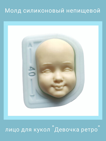 Авторский силиконовый молд "Девочка ретро". Лицо для изготовления куклы (ватной игрушки) XL. Производство Россия. РОСиТТА.