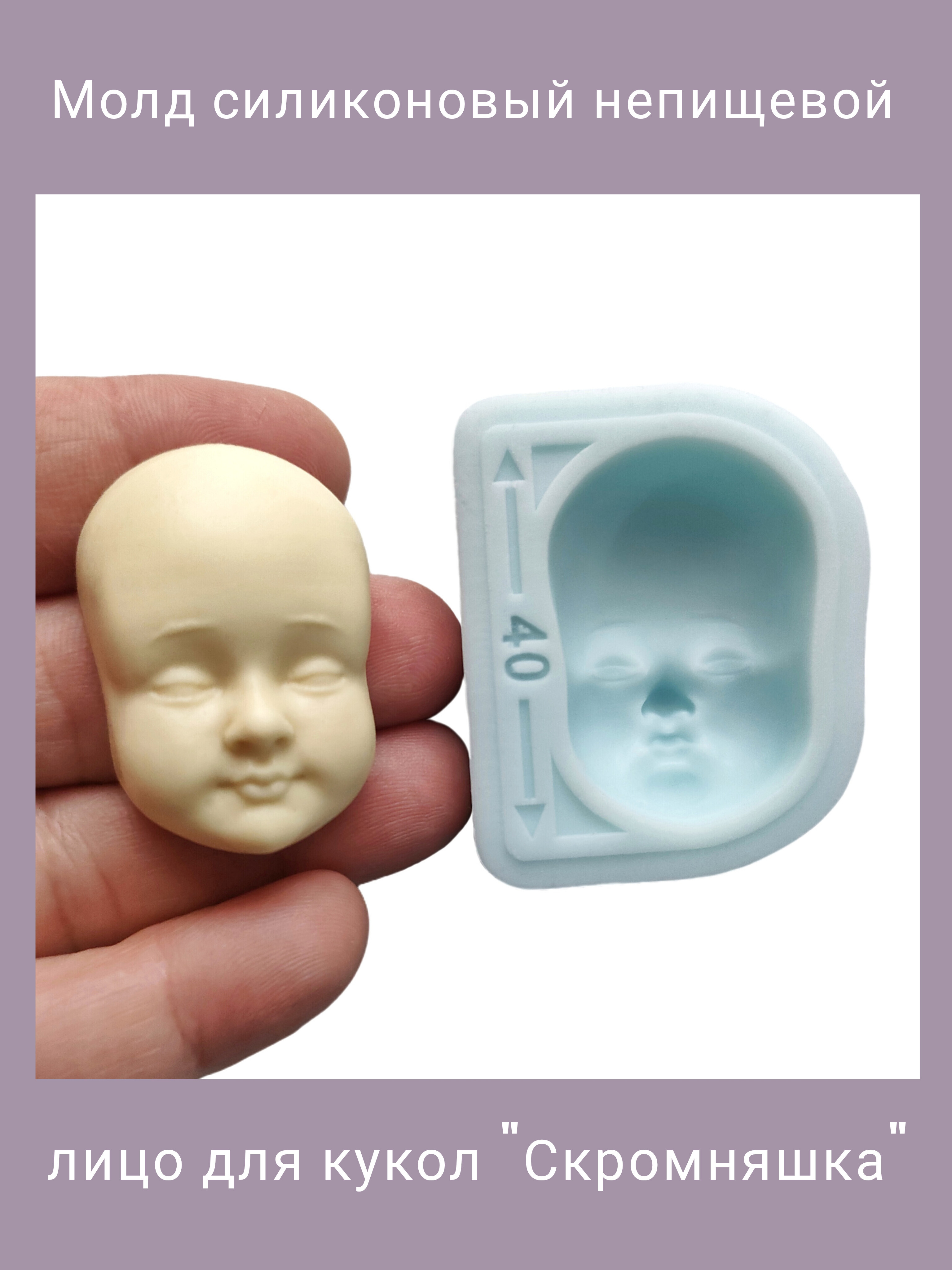 Авторский силиконовый молд "Скромняшка". Лицо для изготовления куклы (ватной игрушки) XL. Производство Россия. РОСиТТА.