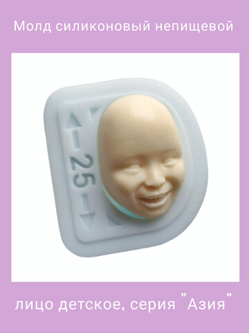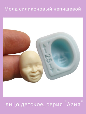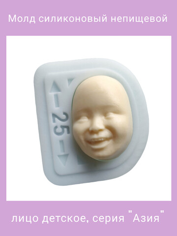 Авторский силиконовый молд "Лицо детское с улыбкой" из сери "Азия" предназначен для изготовления куклы (ватной игрушки).